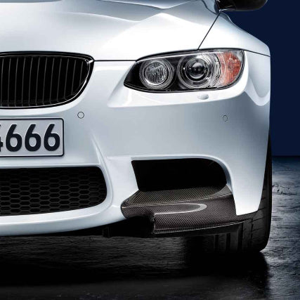 Original BMW Mperformance front splitters left and right in genuine carbon fiber. Fits all E90 / E92 and E93 pre-LCI and LCI models.